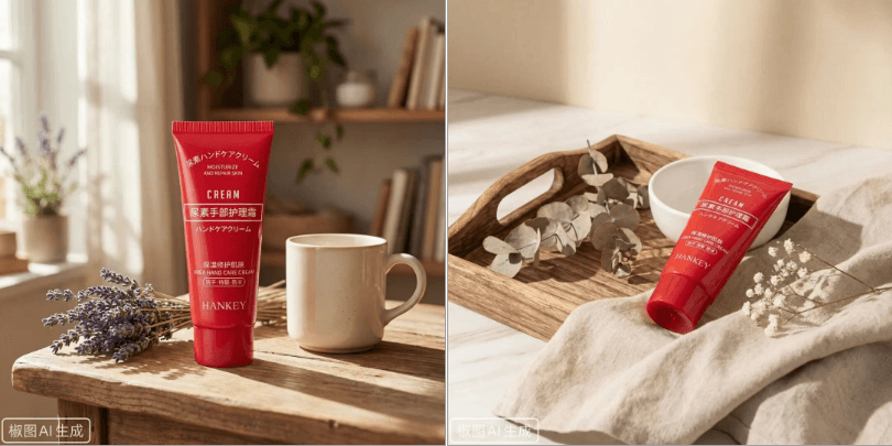 随手拍的照片都可以直接生成专业商业摄影效果图,Nano Banana Pro 升级后,文字渲染准确率真没得说,这个护手霜上3种文字都渲染得很准确,和原产品一模一样。
